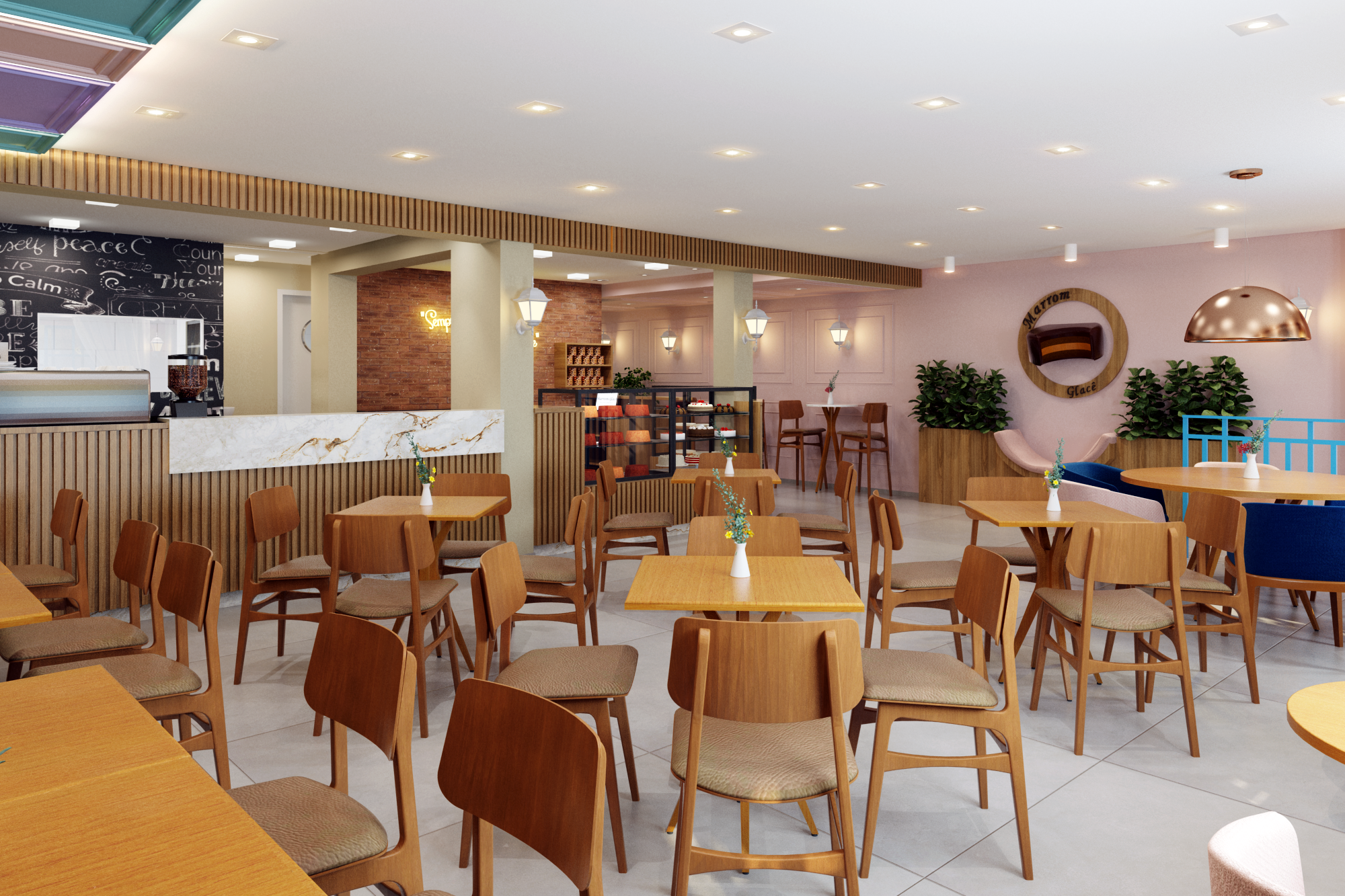 O resultado é um ambiente que combina padrão e inovação, mantendo a essência da Marrom Glacê ao mesmo tempo em que abre caminho para uma identidade visual mais marcante e atualizada.