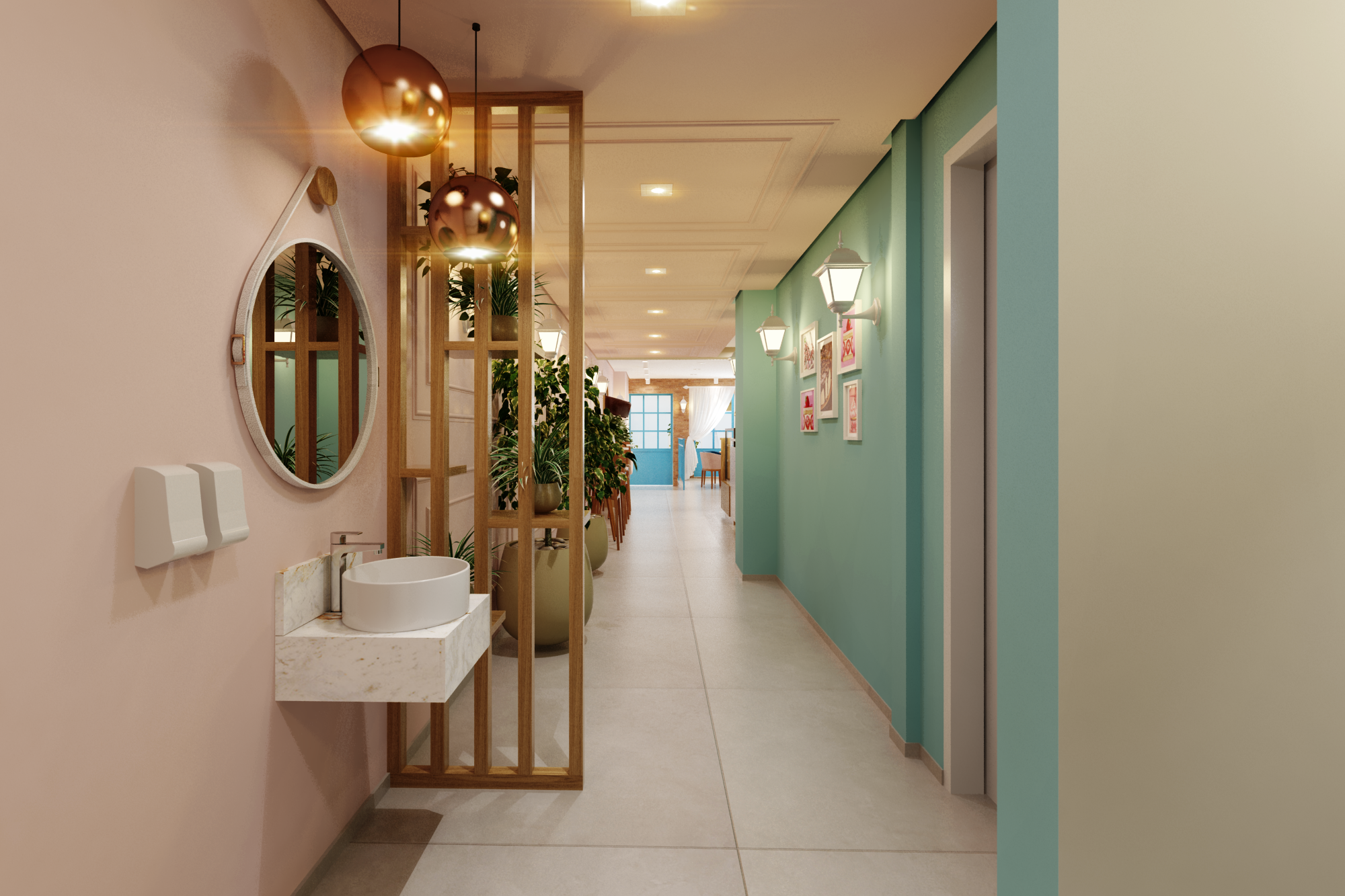 O desafio foi equilibrar elementos já característicos da marca, como a fachada em tijolinho e os pendentes em cobre, com uma linguagem mais delicada e contemporânea.